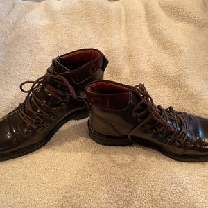 Chocolate Gucci ankle boots, very heavy sturdy boots. Been worn about 5-7 times in really hood condition. Inside looks new. Has one small scuff on back. Bought at Neiman Marcus.