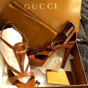 Gucci horse bit sandals size 39, worn once, dust bag included along with extra heel replacements and original card/ paperwork (never opened)