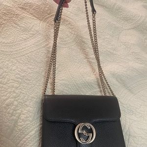 Gucci interlocking ollar Calfskin Small Interlocking G Shoulder Bag Soft black