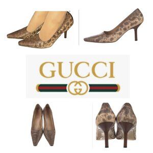Gucci leather brown animal print stiletto heel size 10 B