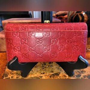 Beautiful vintage red Gucci long wallet in good used condition. Please see all photos for more details and description. Thanks
