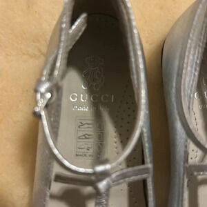 Gucci mary Jane ballet flats with bows silver geniune leather made in Italy size 28. Like new work once inside