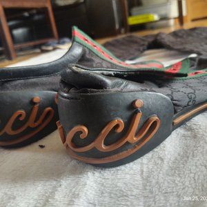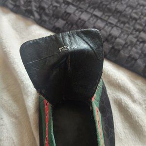 Vintage Gucci shoes with monogram and rare styling. They do have wear on inside of shoes. The outside and soles have little to no wear! These are 17 years old and only worn 4 times. The wear on inside of shoes is by time, not actual wear!