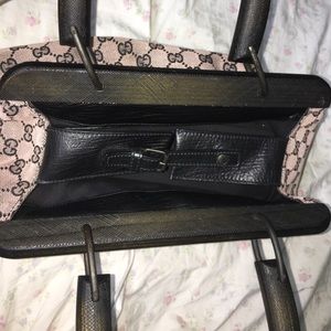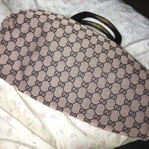 Gucci monogram wood handle tan vintage doctors bag