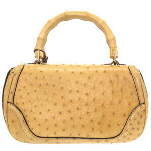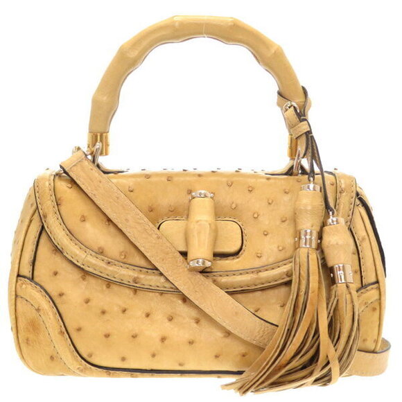 Gucci ostrich bamboo beige fringe handbag brown