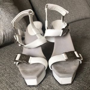 In good condition, a few light scratches see pictures. Worn a few times. Strappy heels. Athletic inspo