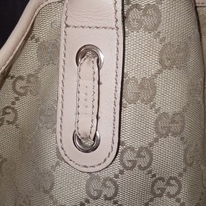 In good condition some stains, pen marks, wear on corners. Inside is pretty clean. Mmissing front bow as seen in 2nd picture. Some wear on handles. 100% authentic