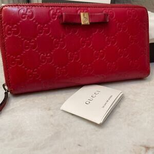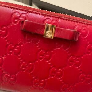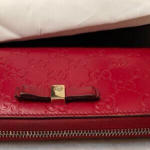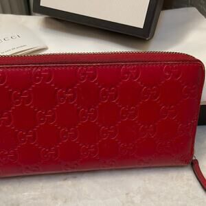 Gucci red leather logo guccissima ziparound wallet