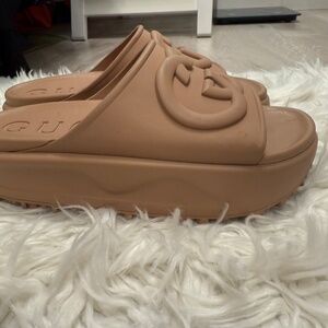 Gucci rubber platform slide with interlocking GG detail size 38 NUDE color