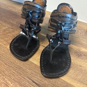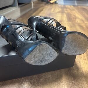 Strapless Gucci black and brown high heel sandal sold on original box.