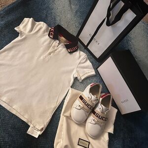 Gucci tennis shoes size 26 and polo shirt size 3, the tennis shoes are in very good condition like new, the shirt has two holes that can be seen in the photo