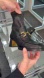Black leather, gold-tone horse-bit hardware, block heel with interior gold detail, interior zipper, square-ish toe