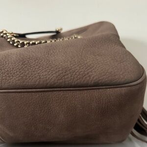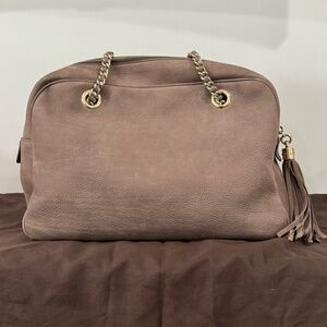 Top zip closure ,Light gold tone hardware, Hanging tassel