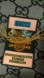 Chic Gucci necklace with a vibrant blue butterfly pendant. Features intricate gold chain. Adds elegance to any look. Also double sided charm as well.