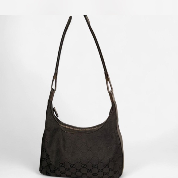 Chic vintage Gucci shoulder bag in black. Features iconic design and luxurious feel. Perfect for elevating any outfit. Comes with dustbag
