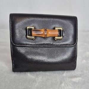 Please look at the pictures the edges need restoration. Interior leather is very soft. Numbers are difficult to say but they are there. Zippered coin purse needs cleaning snap is still good. Measures approximately 5.75 x 4.5.