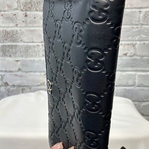 Navy Guccissima signature zip around Dorian wallet, silver-tone hardware, card slots on both sides, single interior zip pocket, one open pocket