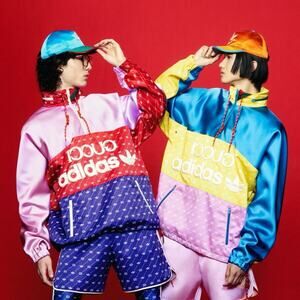New With Tags (NWT) – Authentic Gucci x Adidas Collaboration Oversize Jacket. Crafted from acetate with bold Gucci x Adidas logo detailing, this men’s designer jacket blends sportswear aesthetics with luxury fashion. Oversized fit for a modern streetwear look.