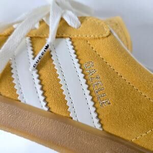 Gucci x Adidas Gazelle low top sneaker from the 2022 collaboration. Made in Italy. Trendy butter yellow color leather with classic three white stripes... so cute!