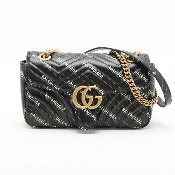 Gucci x Balenciaga GG Marmont Leather Chain Shoulder Bag – Black