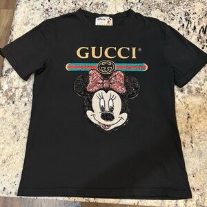This stylish Gucci t-shirt features a playful Minnie Mouse design. The black color adds a classic touch, perfect for any occasion. Authentic Gucci !!!! Excellent used condition