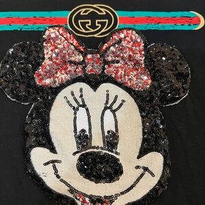 Gucci x Disney Black T-Shirt with Minnie Mouse Design in sequins