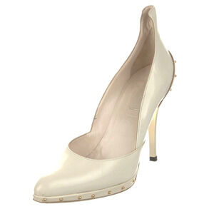 Gucci x Tom Ford 8 Studded $1495 Leather Platform Heels Ivory White Pumps Gold