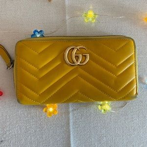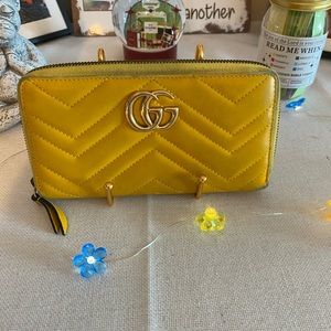 Gucci authentic yellow quilted double GG Maramont zip around wallet with soft leather and gold hardware. EUC $185
