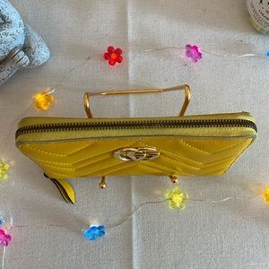 Gucci yellow quilted chevron maramont double GG hardware EUC $185 7.6x4 inches.