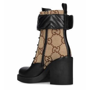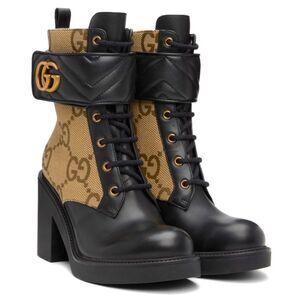 Gucci Beige & Black GG Marmont Combat Ankle Boots Leather Canvas 37.5