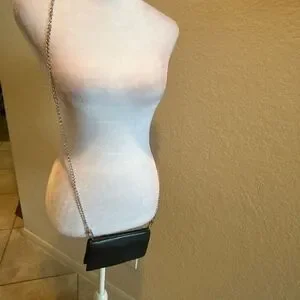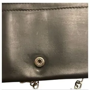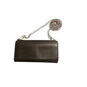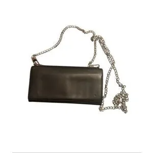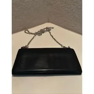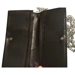 Gucci Bifold Long Wallet Black Leather With Silver Chain Strap Cocktail Party