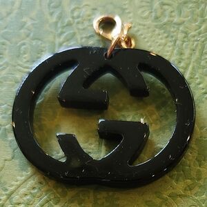 Gucci black enamel pendant with clasp versatile. Can be stylishly used as a medallion for sunglasses or placed on a chain or handbag as charm.