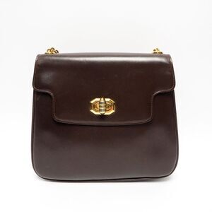 Gucci Chain Shoulder Bag Leather Gold Metal Fittings Brown