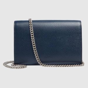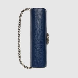 Gucci Chain Wallet Blue Silver Crystal Tiger Head Leather