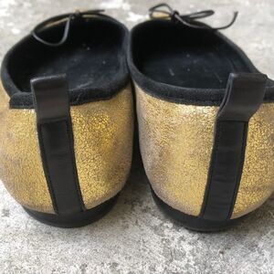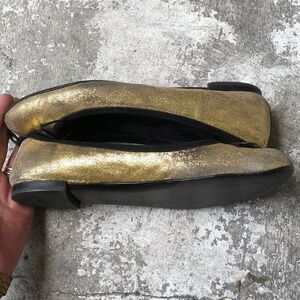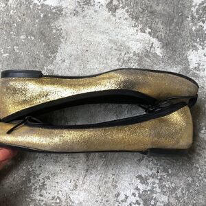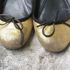These are sparkly gold flats that are not new and show signs of wear so please look at the pictures they are a good run around shoes. I have re-stained the soul is black so that when you’re walking to wear doesn’t show