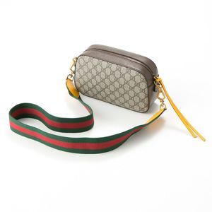 Gucci GG Supreme Leather/GG Fabric Shoulder Bag Messenger Bag Beige