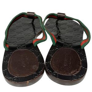 Gucci GG Web Stripe Thong Sandals EU 38.5 US 8.5 Brown Flip Flop Slide Flat Heel