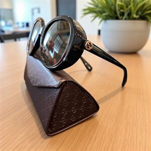 Stylish Gucci sunglasses in glossy black. Perfect for a modern look.