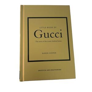 Elegant Gucci book with a gold cover. A must-have for fashion lovers.