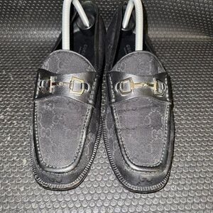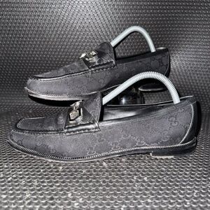 Gucci Horsebit Black Canvas Logo Designer Loafers Shoes Womens Size 39.5 (9.5)