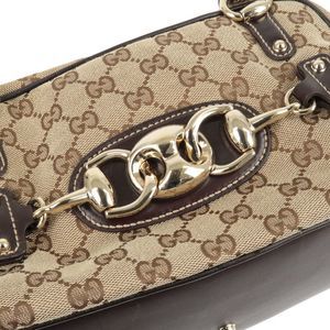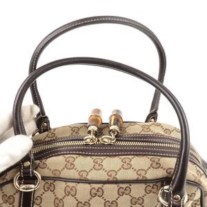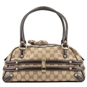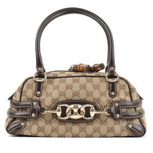 Gucci Horsebit Bamboo GG Canvas x Leather Mini Boston Bag Handbag Beige x Brown