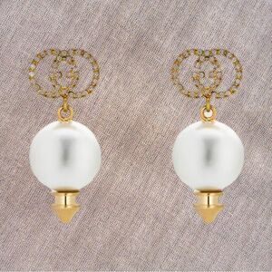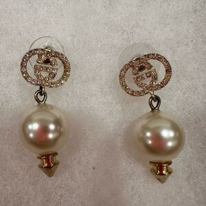 Gucci interlocking earrings with pearl. Great condition, minor scuffing on spiked stud. Original box & earring backings not included.