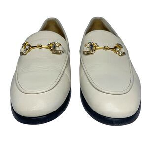 Gucci Jordaan Crystal Horsebit Loafers EU 36 US 6 White Leather Slip On Flats