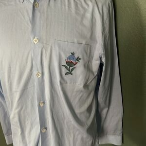 Gucci Light Blue Pinstriped Shirt Embroidered Flower pocket, Size 42 Preowned