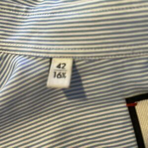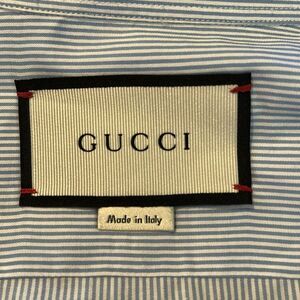 Very good condition. Size 42/16.5 Gucci shirt brings a fresh take on the classic blue and white pinstripe pattern, featuring subtle embroidered floral on chest pocket with number 25 for a unique and modern touch. Crafted from 100% cotton, this shirt is lightweight and breathable, perfect for a polished look on warmer days. The pointed collar and sharp lines maintain a clean silhouette that transitions easily from professional settings to casual.