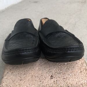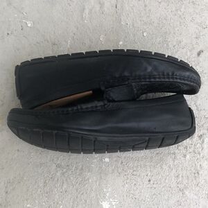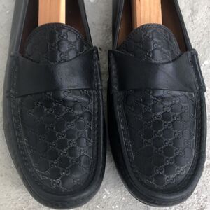 Black leather loafers not new but still good. Please look at the picture style number is 466904. They have slight wear on the back of the heelswhich I show in pictures n inside has knick. Shoe trees not included.