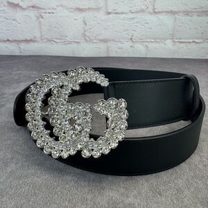 Authentic Gucci Marmont Wide Double Gg Crystal Embellished Belt 582100 95/38
