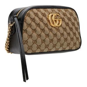 Gucci Marmont Beige Black Small GG Shoulder Bag