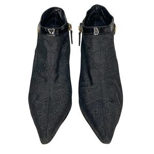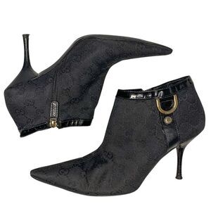 Gucci Monogram Double G D-Ring Canvas Ankle Booties US 7 Black Supreme Heels