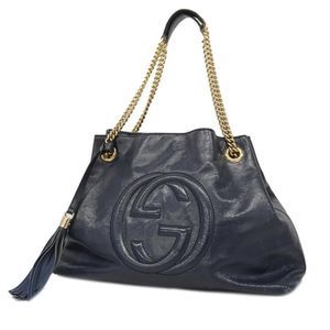 Gucci Soho Hardware Chain Shoulder Leather Navy Gold Shoulder Bag